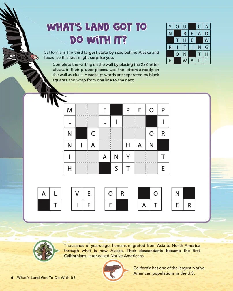 Published April 26, 2024 at 808 × 1008 in Hey, you: Welcome! A sample Writing on the Wall puzzle from The Puzzler’s Guide to California A sample “Letterboxes” puzzle from The Puzzler’s Guide to California, by Jen Funk Weber ‹ Return to post Leave a ReplyCancel reply This site uses Akismet to reduce spam. Learn how your comment data is processed.